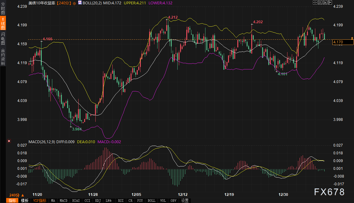 当前市场基本面由两大核心叙事主导:美债的区间僵持与日债的历史性突破。知名机构分析指出,周二隔夜交易中,美债正处于一场“拉锯战”之中。一方面,日债收益率刷新多年高点,对全球债券收益率构成上行牵引;另一方面,德国通胀数据显示价格压力放缓,提振了德债需求,对美债收益率形成些许下拉力。这种多空力量交织使得10年期美债收益率被限制在4.17%-4.19%的狭窄区间内,总体仍处于近期高位区间(4.08%-4.20%)的上端。市场普遍认为,在周五美国非农就业数据公布前,这一区间可能难以被有效突破。